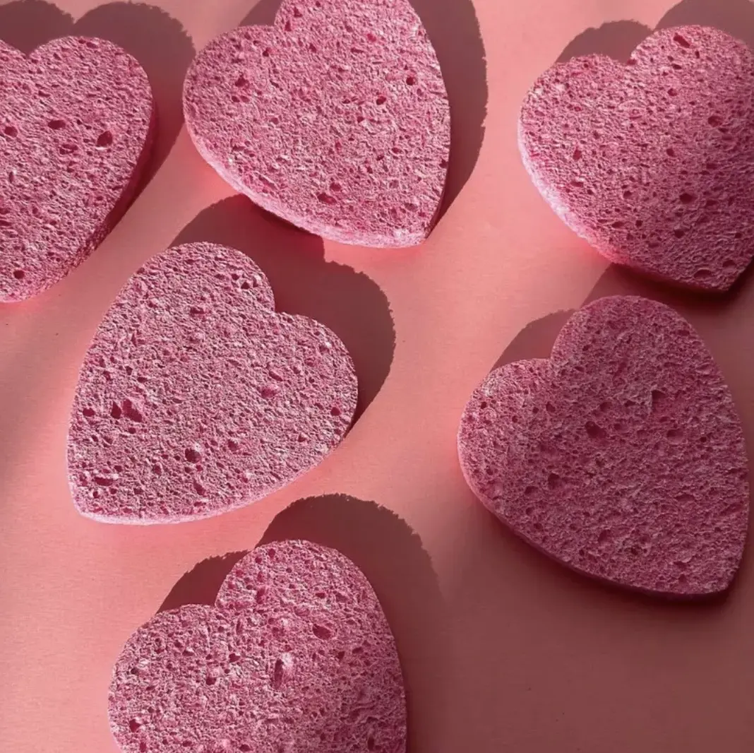 Esponja reutilizable hecha 100% de fibra de celulosa vegetal en forma de corazón.