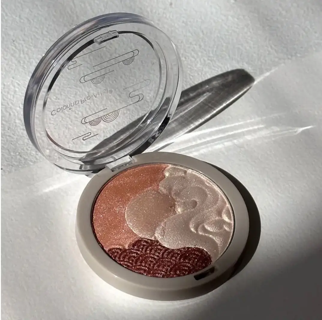 Es un hermoso iluminador en polvo compacto con una súper pigmentación en tonalidades dorado, champagne, rose gold y cobre. Su textura es adorable y dará a tu piel un brillo precioso.